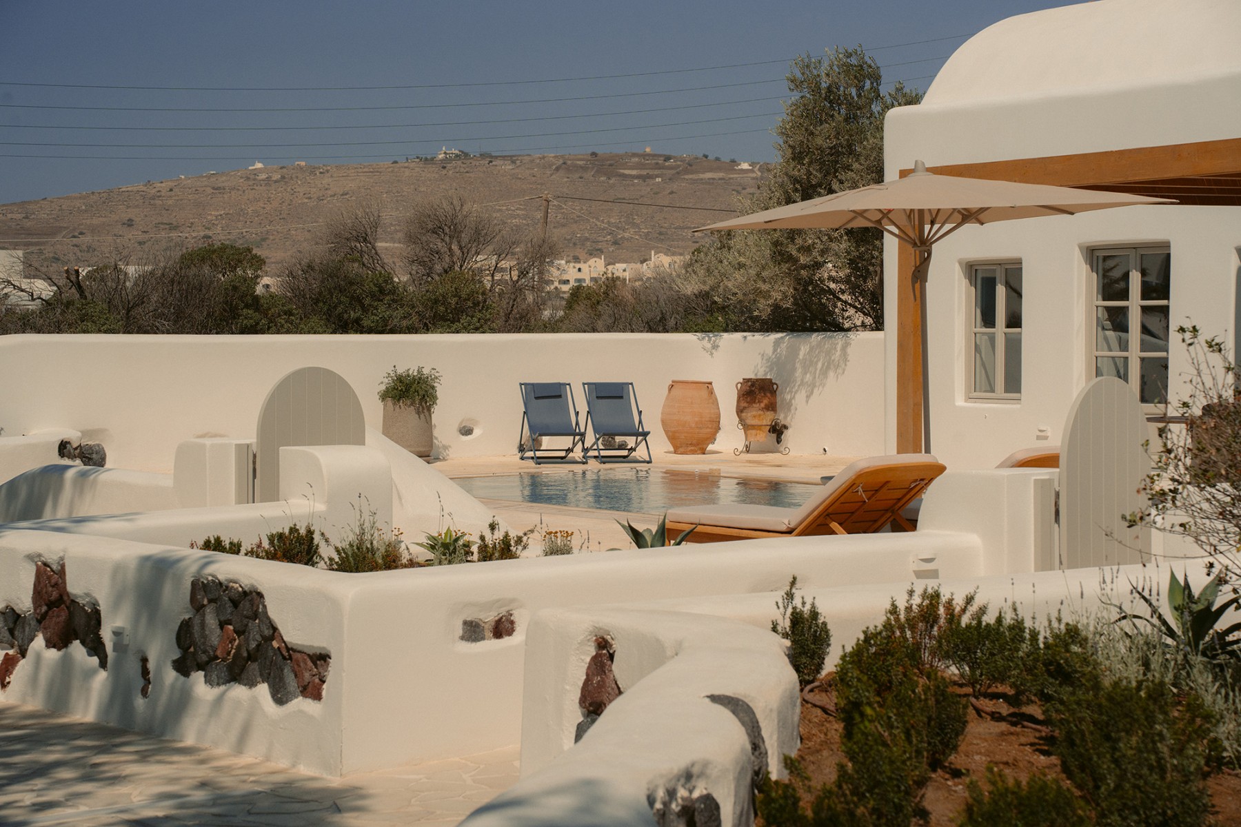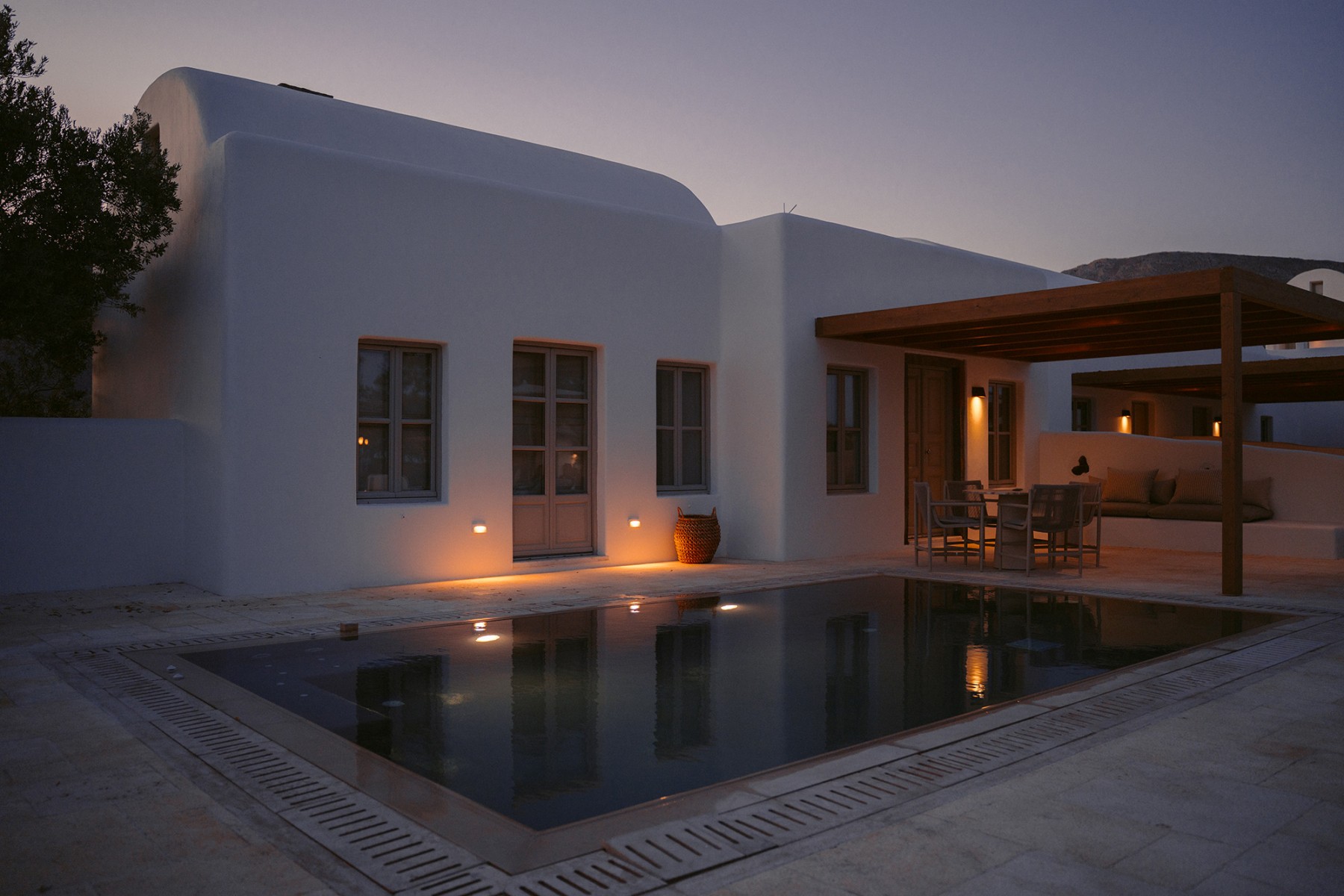 This artfully balanced yet plush environment will effortlessly lift your spirit as you lie back on the soft linen, run your fingers on the smooth wooden furniture, or indulge yourself in the Jacuzzi. Wherever you rest your eyes you will find nothing but clean lines, pastel tones, and stylish details, all wrapped in the white and blue of the Aegean.