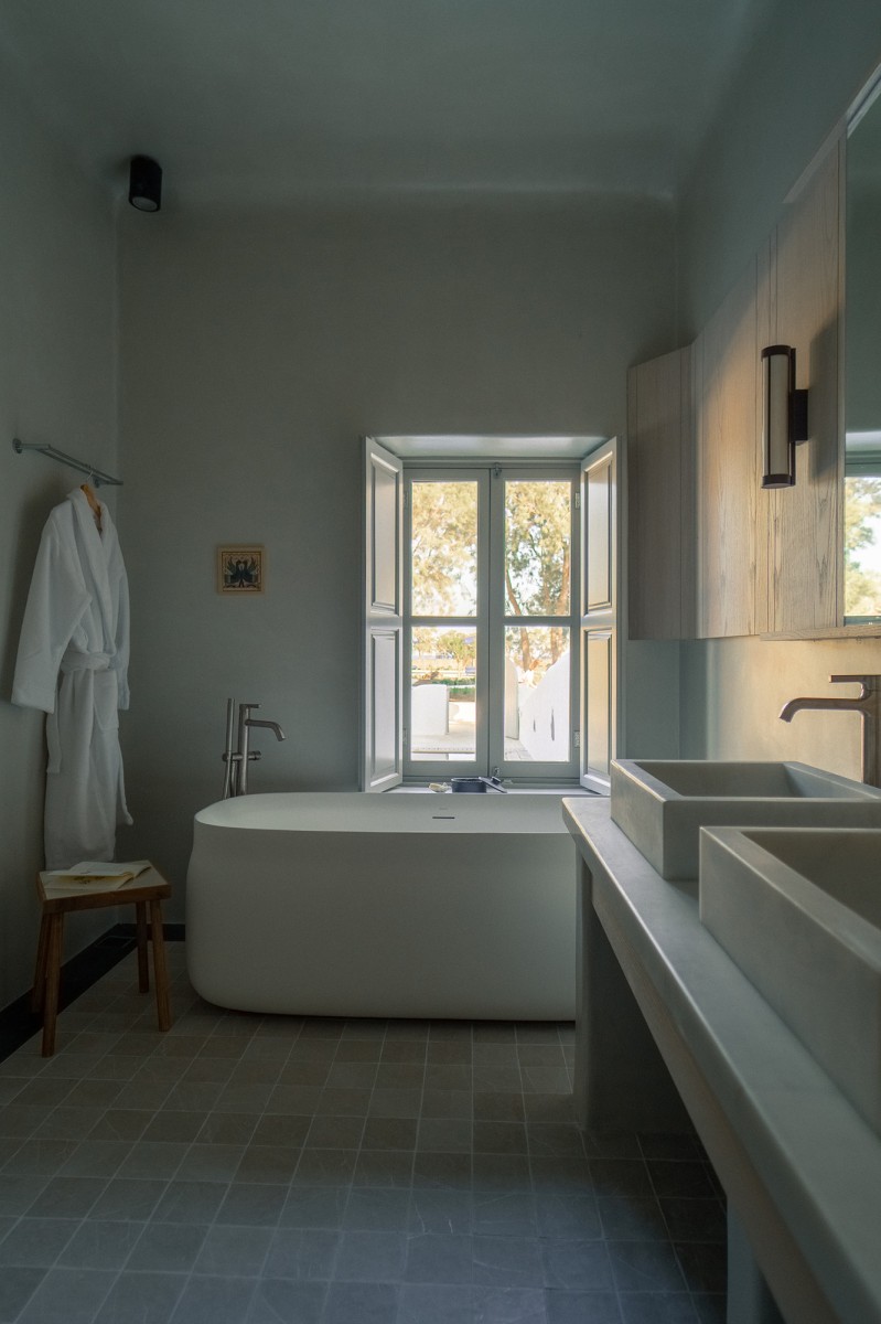 An airy 50-75m2 contemporary space designed for ease and free movement. See it unfold in the ample Living Area and the sumptuous Bedroom, with its King-size Bed and cloud-like anatomic mattress. As you admire the sublime Sea View from the stylishly furnished Patio or Terrace, let the smooth light stone paving caress your feet. Next, make your way to the lavish Marble Bathroom with shower or bathtub. The aroma of the Korres Natural guest products will envelop you as you wash off your worries and tune in to the divine rhythm of the Aegean.