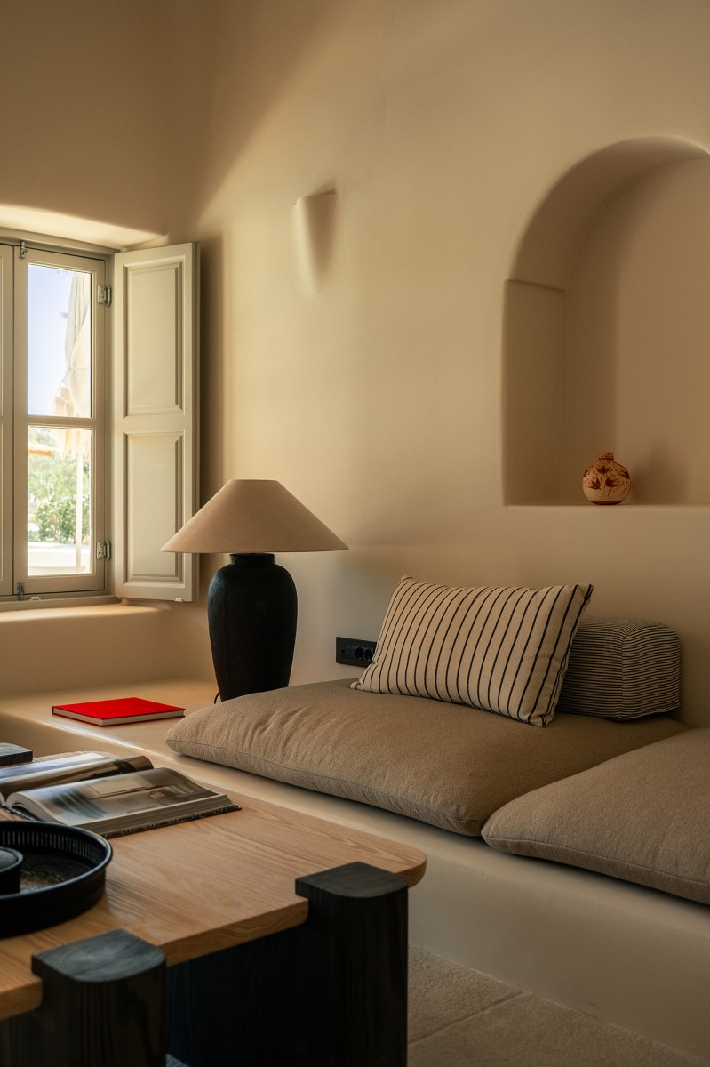 An airy 60sm contemporary space designed for ease and free movement. See it unfold in the ample Living Area and the sumptuous Bedroom, with its King-size Bed and cloud-like anatomic mattress. As you admire the sublime Sea View from the stylishly furnished Patio or Terrace, let the smooth light stone paving caress your feet. Next, make your way to the lavish Marble Bathroom with shower or bathtub. The aroma of the Korres Natural guest products will envelop you as you wash off your worries and tune in to the divine rhythm of the Aegean.
