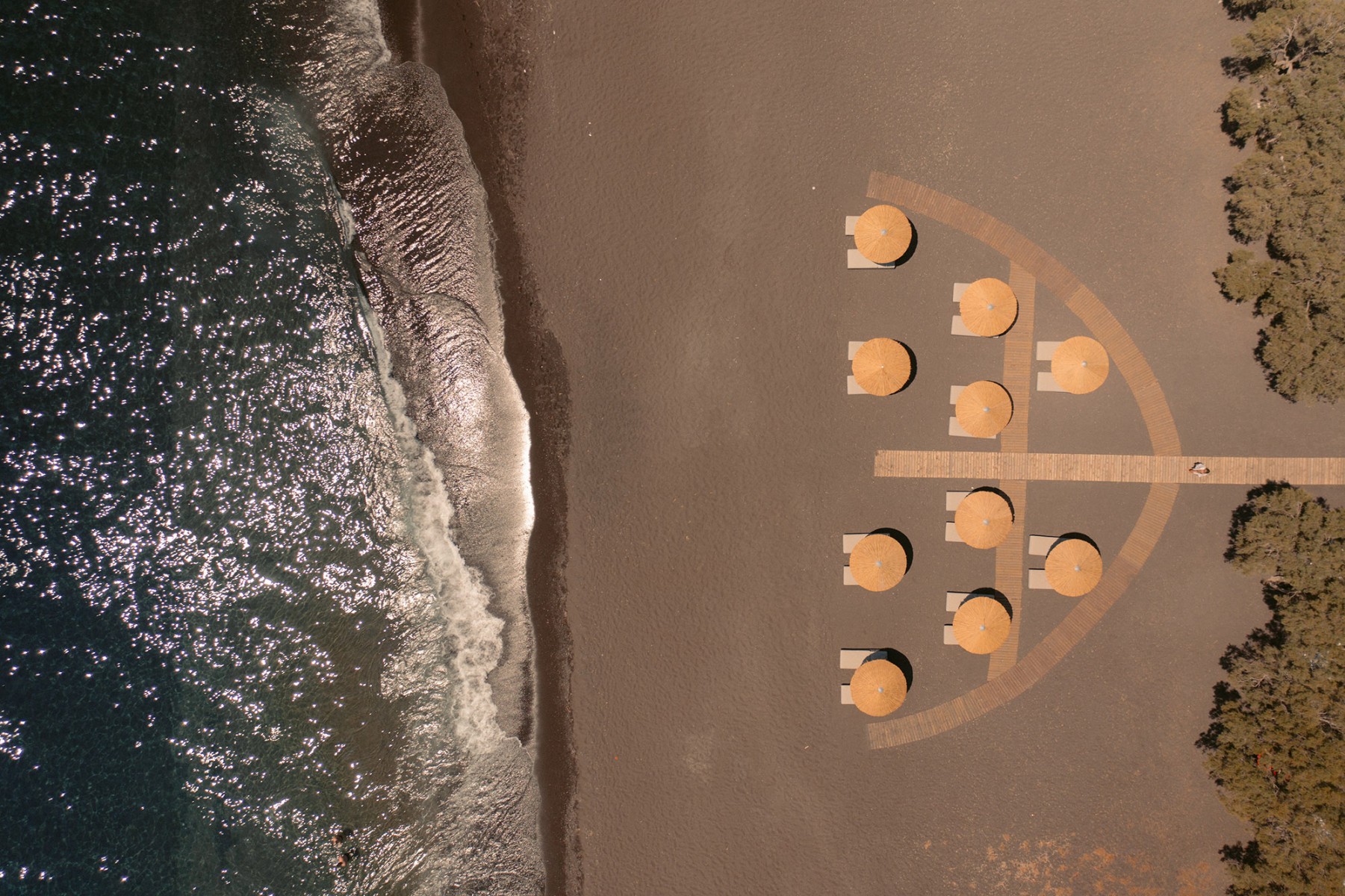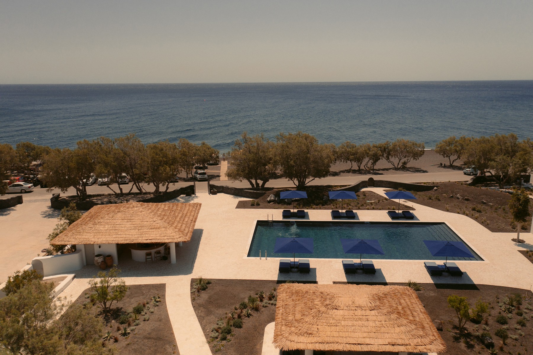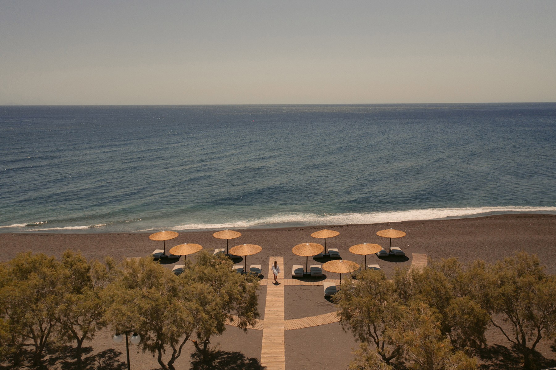 The welcoming complex of Black Rose Suites is located in Perivolos, a small lively seaside village lying at the southeast coast of Santorini. Our hotel name, Black Rose, pays homage to the island’s volcanic origins and its incomparable landscape. Testament to it, the beautiful 5km beach: nothing short of a vast stretch of warm black sand spreading but a breath away from Black Rose Suites.